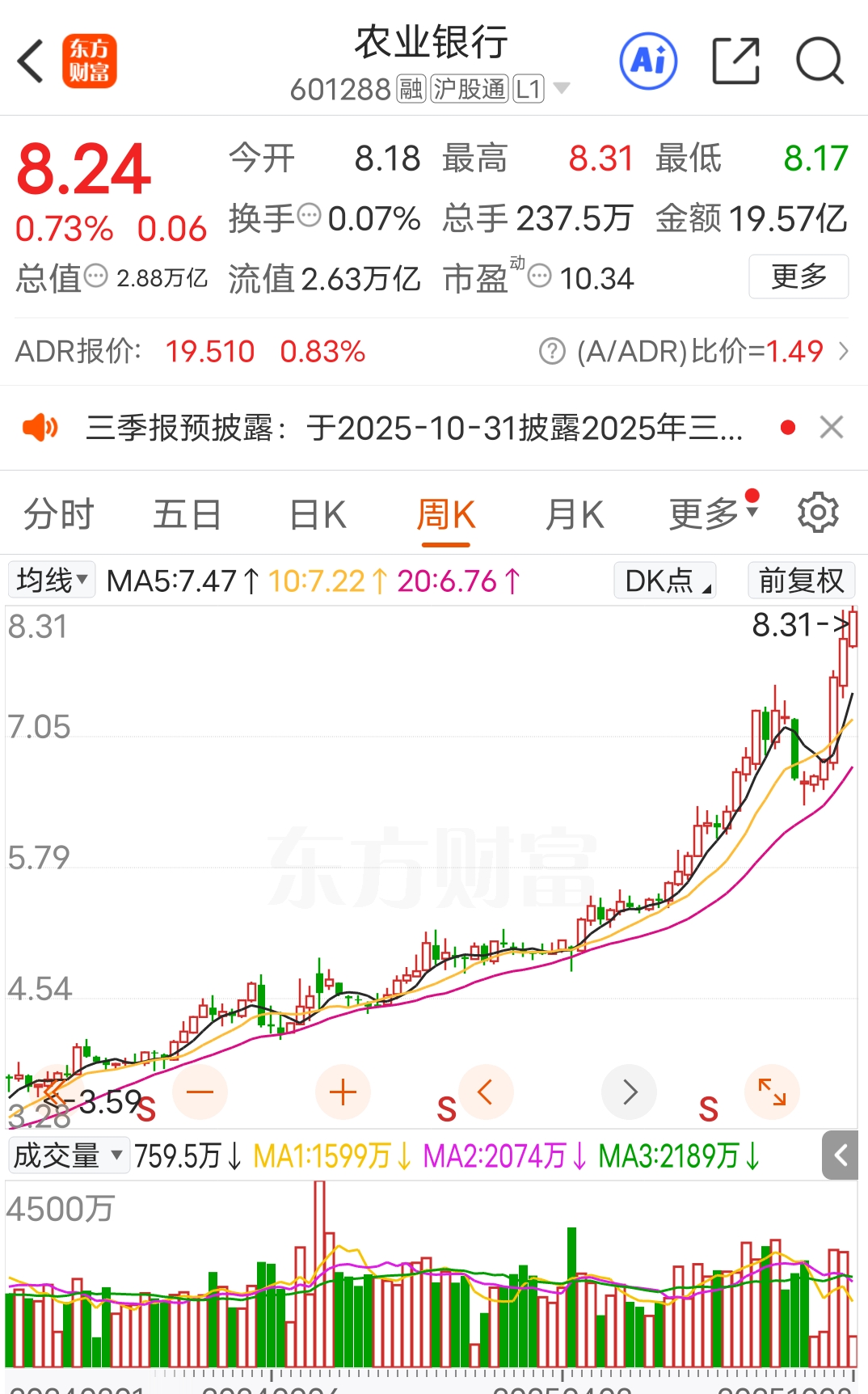 农业银行一路涨,涨了几倍,能连拉十几根阳线,可怕不