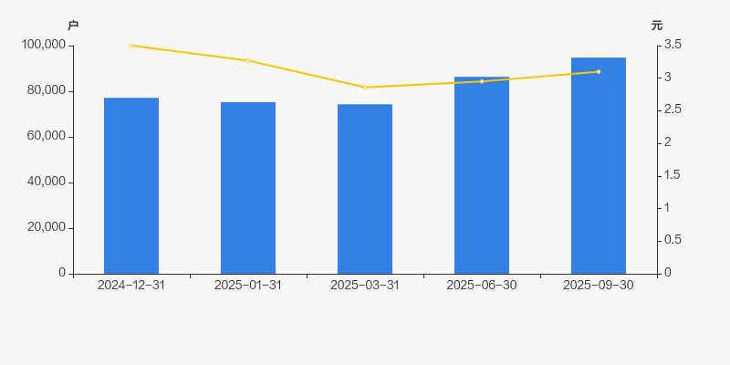 2024年12月31日至今,公司股东户数显著增长,区间涨幅为22.87%。2024年12月31日至2025年9月30日区间股价下降11.43%。