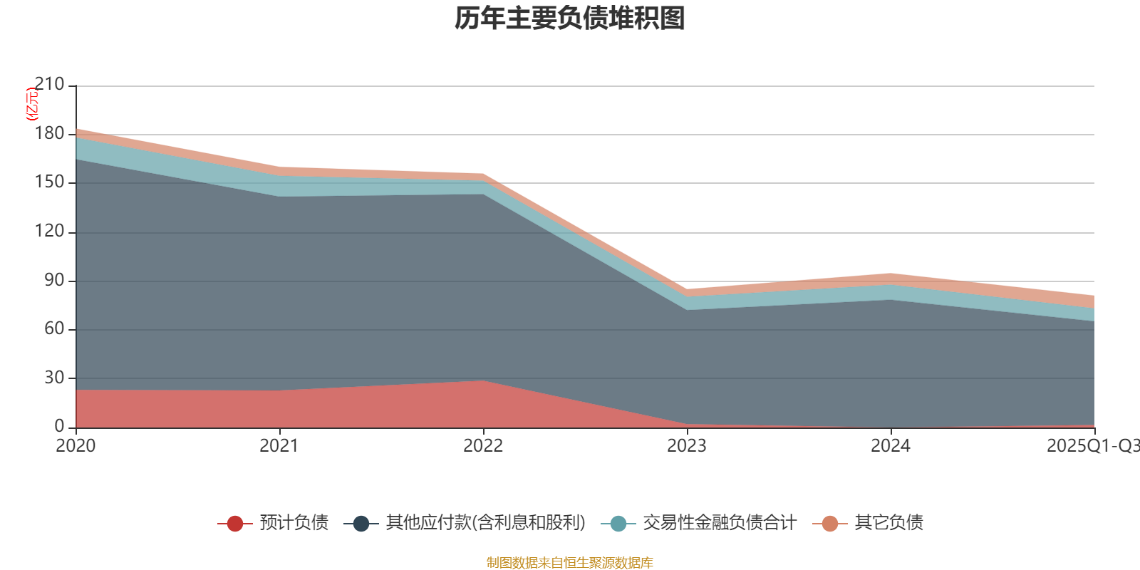 负债重大变化方面,截至2025年三季度末,公司其他应付款(含利息和股利)较上年末减少18.87%,占公司总资产比重下降4.79个百分点;预计负债占公司总资产的0.69%,上年末为0;租赁负债较上年末增加2253.51%,占公司总资产比重上升0.59个百分点;交易性金融负债合计较上年末减少14.23%,占公司总资产比重下降0.38个百分点。