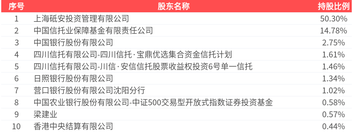 公司股东户数为9.47万户,前十大股东持股数量为73.68亿股,占总股本比例为74.84%,前十大股东持股情况如下: