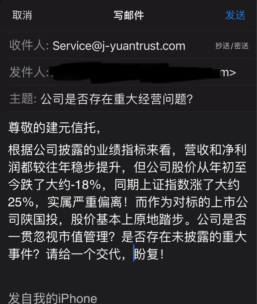 $建元信托(SH600816)$ 电话没人接!只能发邮件了