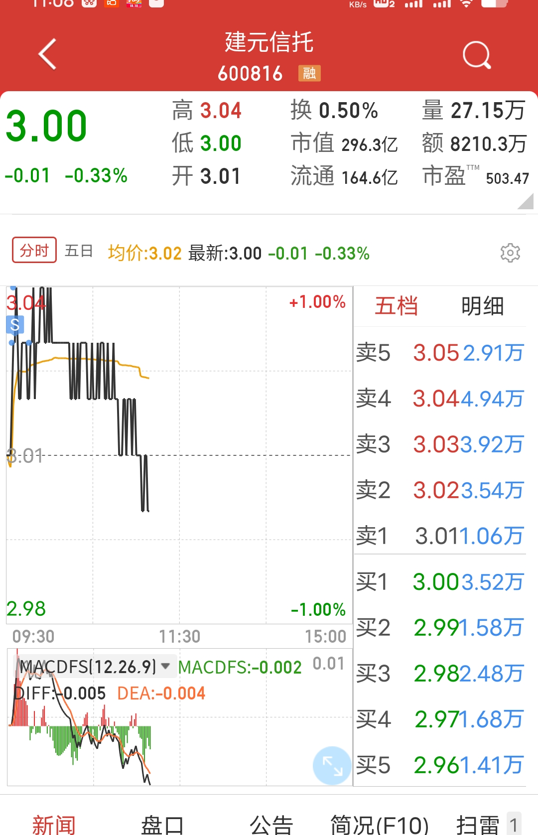 $建元信托(SH600816)$ 非得特立独行逆市拉红,还是扛不住大盘,板块的下跌