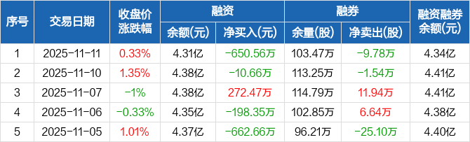 建元信托:融资净偿还650.56万元,融资余额4.31亿元(11-11)