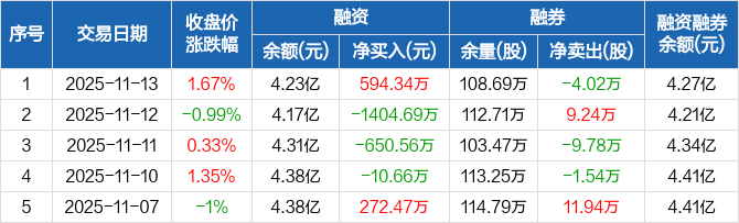 建元信托:融资净买入594.34万元,融资余额4.23亿元(11-13)