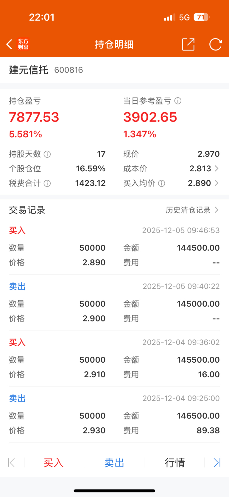 $建元信托(SH600816)$ 2.97建的仓,又回到了2.97,踢了这么多天,不容易,去弄个夜宵庆祝下!