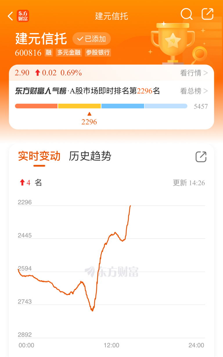 $建元信托(SH600816)$ 人气上来了,呵呵