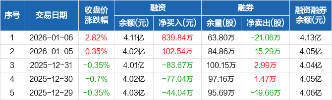 建元信托:融资净买入839.84万元,融资余额4.11亿元(01-06)