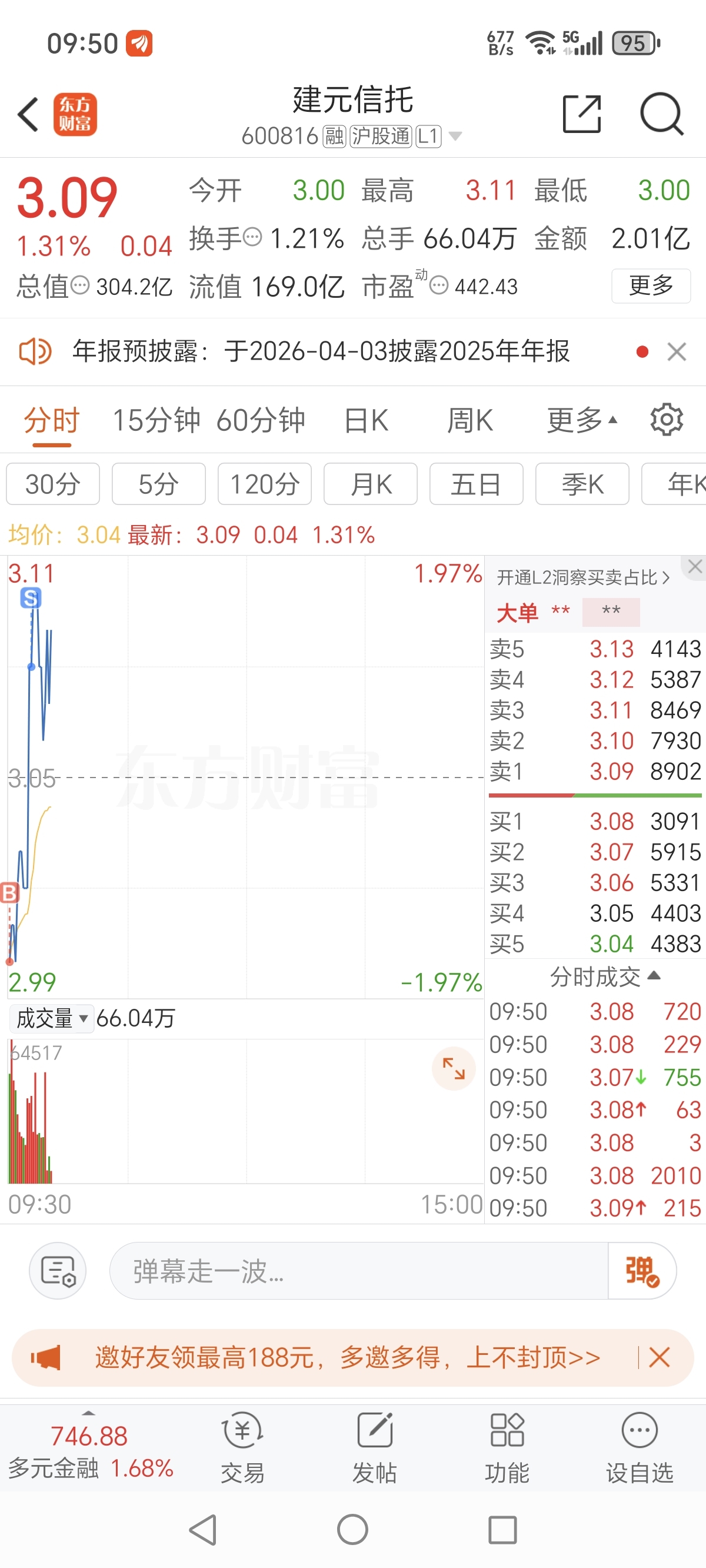 $建元信托(SH600816)$ 做了一个T。