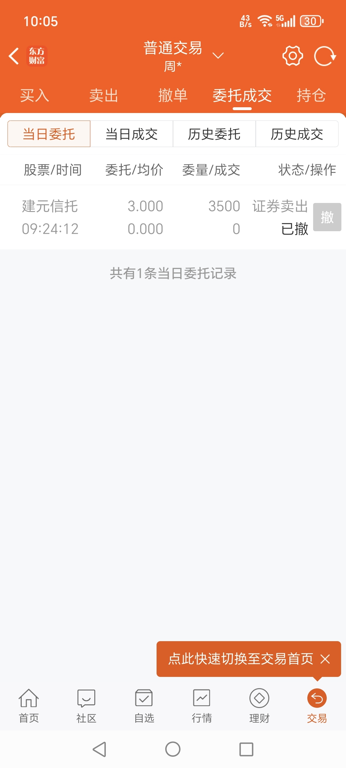 $建元信托(SH600816)$ 没成交。。。还不如低挂一分钱全部清仓哩