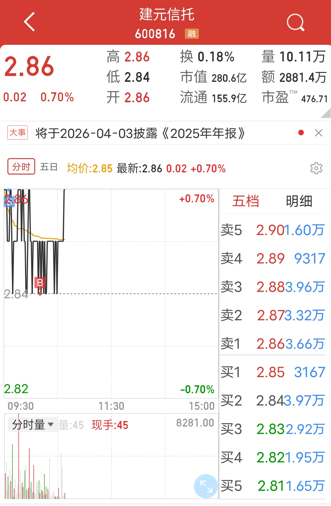 $建元信托(SH600816)$ 量缩极致,两分钱玩一天天