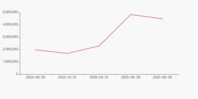 截至2025年9月30日,公司最新总股本为5.33亿股,其中流通股本为5.29亿股。户均持有流通股数量由上期的2.64万股上升至3万股,户均流通市值34.78万元。