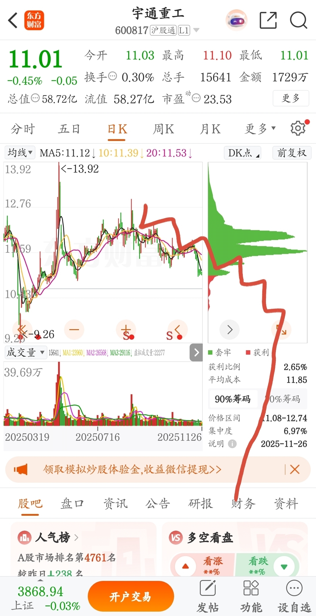 $宇通重工(SH600817)$