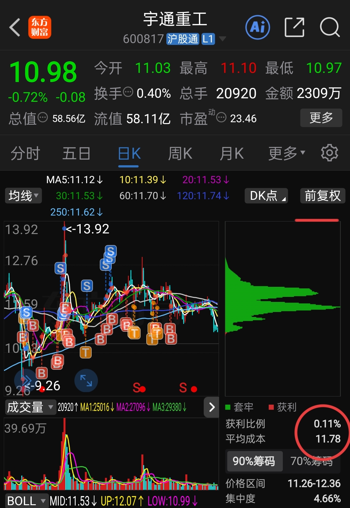 #收盘点评# 获利比例是千分之一,9月30日是1.76万人,获利的只有17人,再排除了十大股东,还有几个获利的?8连阴也是主力做出来吓唬散户的,昨天前天阴线都是高开做出来的,明白人不可能把筹码给他们的。