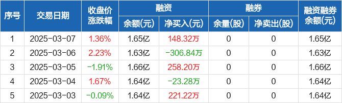 中路股份:融资净买入148.32万元,融资余额1.65亿元(03-07)