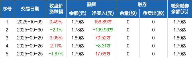 中路股份:融资净买入156.89万元,融资余额1.79亿元(10-09)