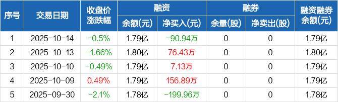 中路股份:融资净偿还90.94万元,融资余额1.79亿元(10-14)