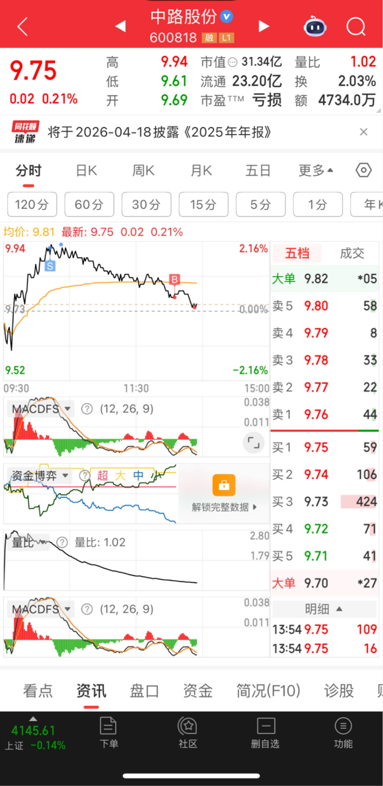 $中路股份(SH600818)$ 只能说压根不敢格局你,我去其他地方格局就是涨停,在你这里格局就不得不做T,都快丧失信心了,把钱存中路这里。我都如此,更何况那些重仓了中路的兄弟姐妹,2025一整年完美错过牛市了,大家都是人心肉长的。你什么时候能大涨啊,每天看到都烦。真的早点涨起来,我就好早点跟你拜拜了
