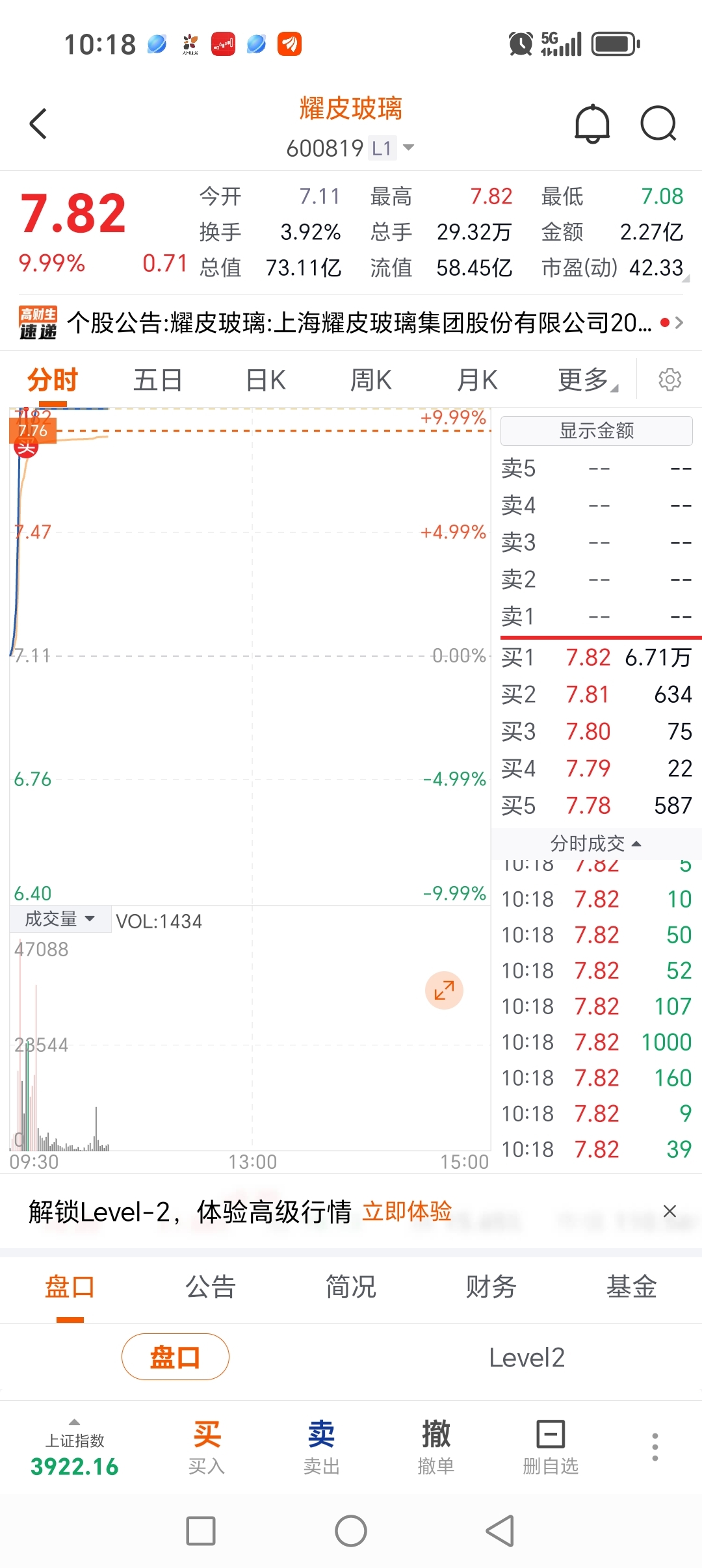 $耀皮玻璃(SH600819)$  一个交易系统几万次重复而已