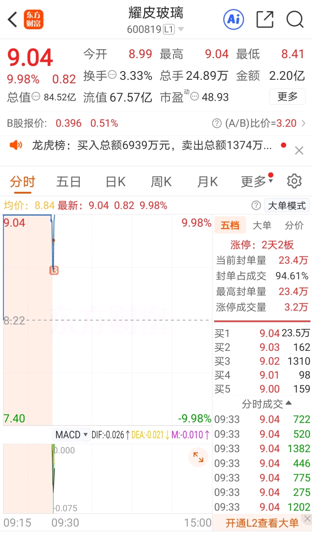 $耀皮玻璃(SH600819)$ 追高买入,注意风险