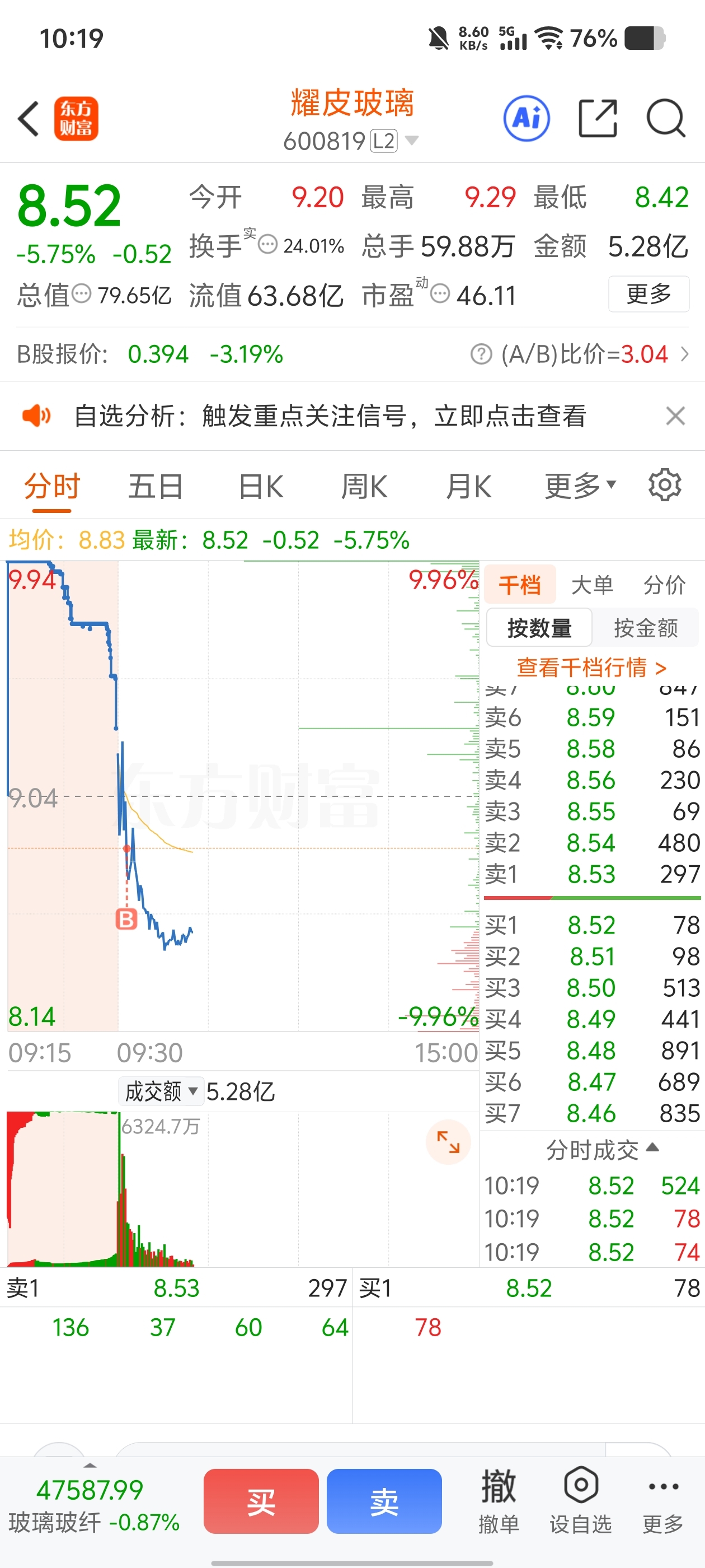 $耀皮玻璃(SH600819)$ 这明天能活着出来吗