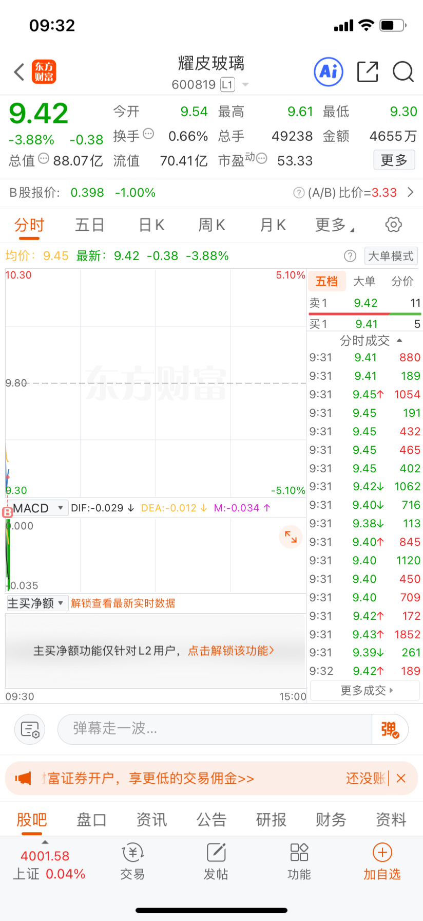 水下9.42低吸介入$耀皮玻璃(SH600819)$ #强势机会# #实盘记录# #投资干货# #投资随笔#