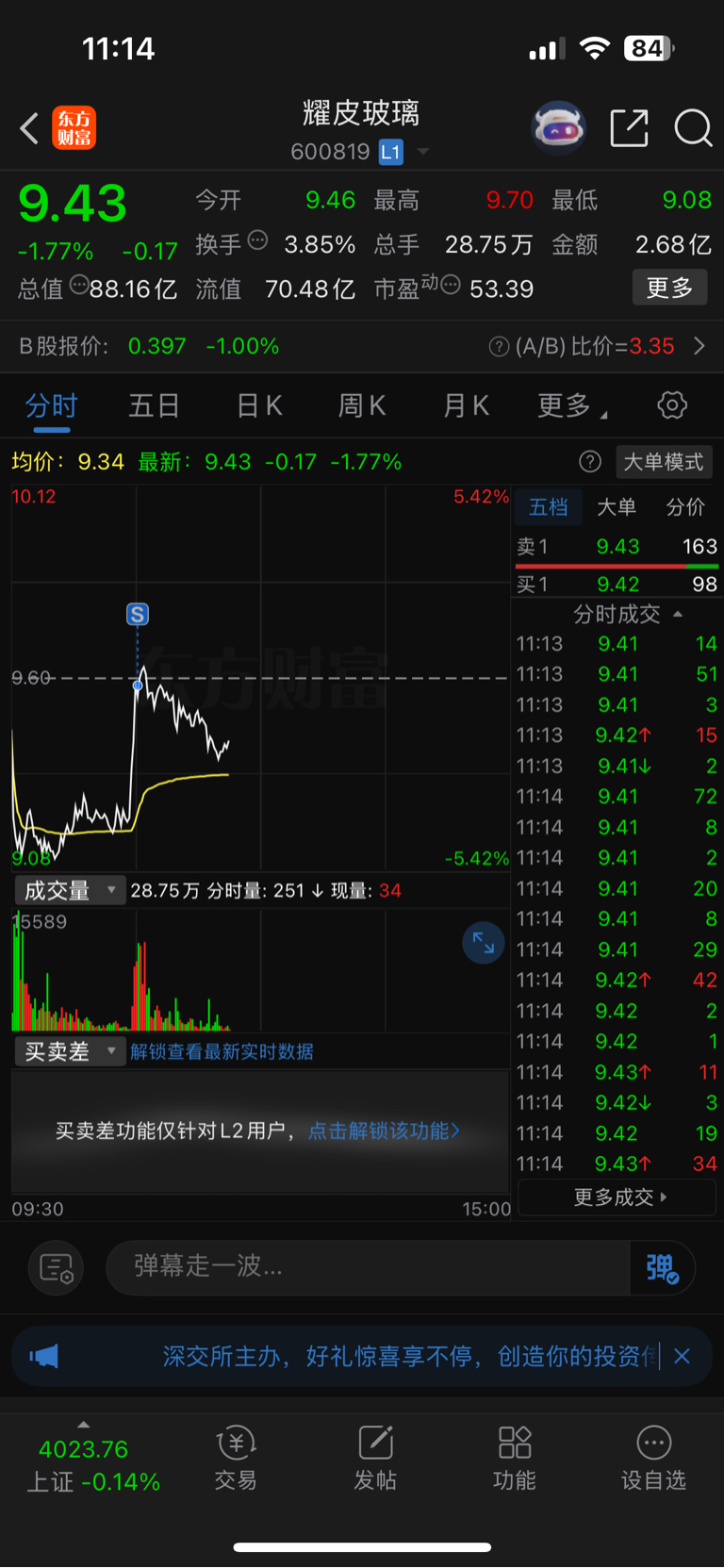 $耀皮玻璃(SH600819)$