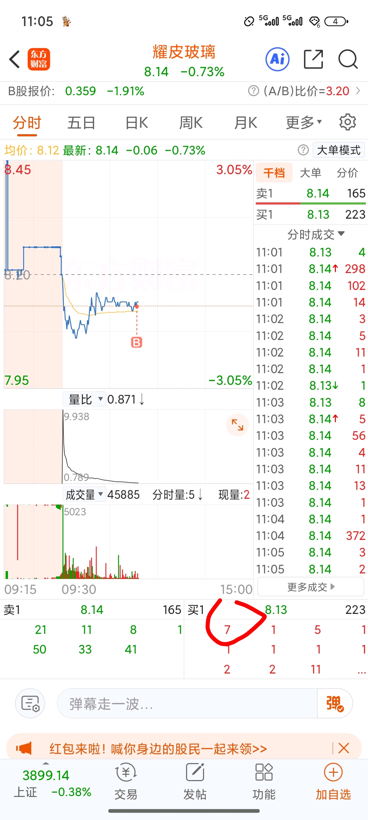$耀皮玻璃(SH600819)$ 我的这7手等了三分钟了
