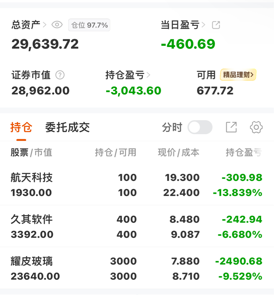 2025.12.4航天科技.t飞了久其软件,耀皮玻璃.试图加仓做t没起来市场多天