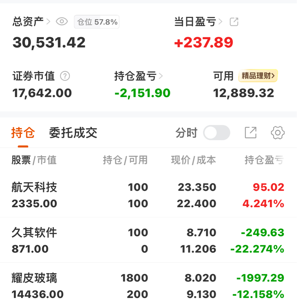 2025.12.8航天科技.不动耀皮玻璃.久其软件.做t