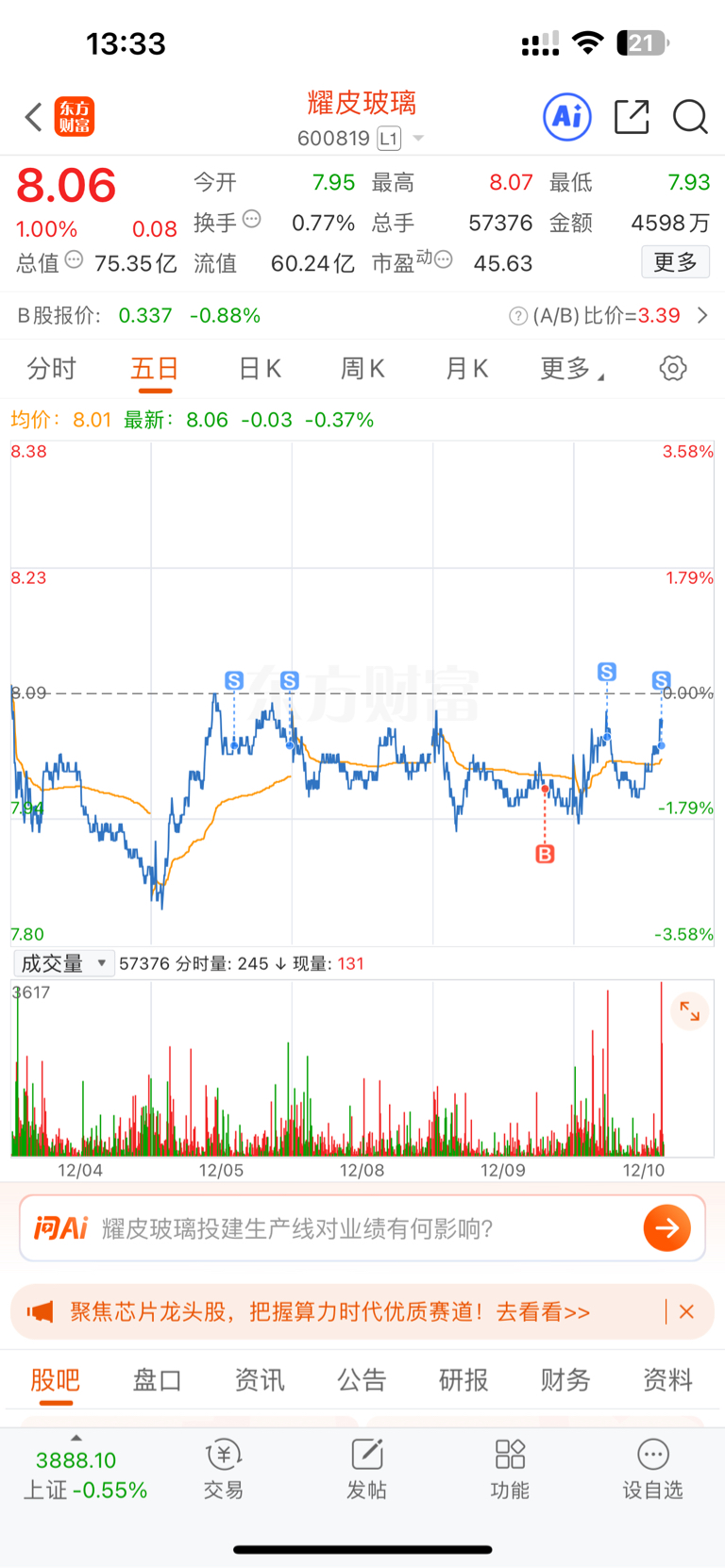 $耀皮玻璃(SH600819)$ 我看你什么时候能涨起来