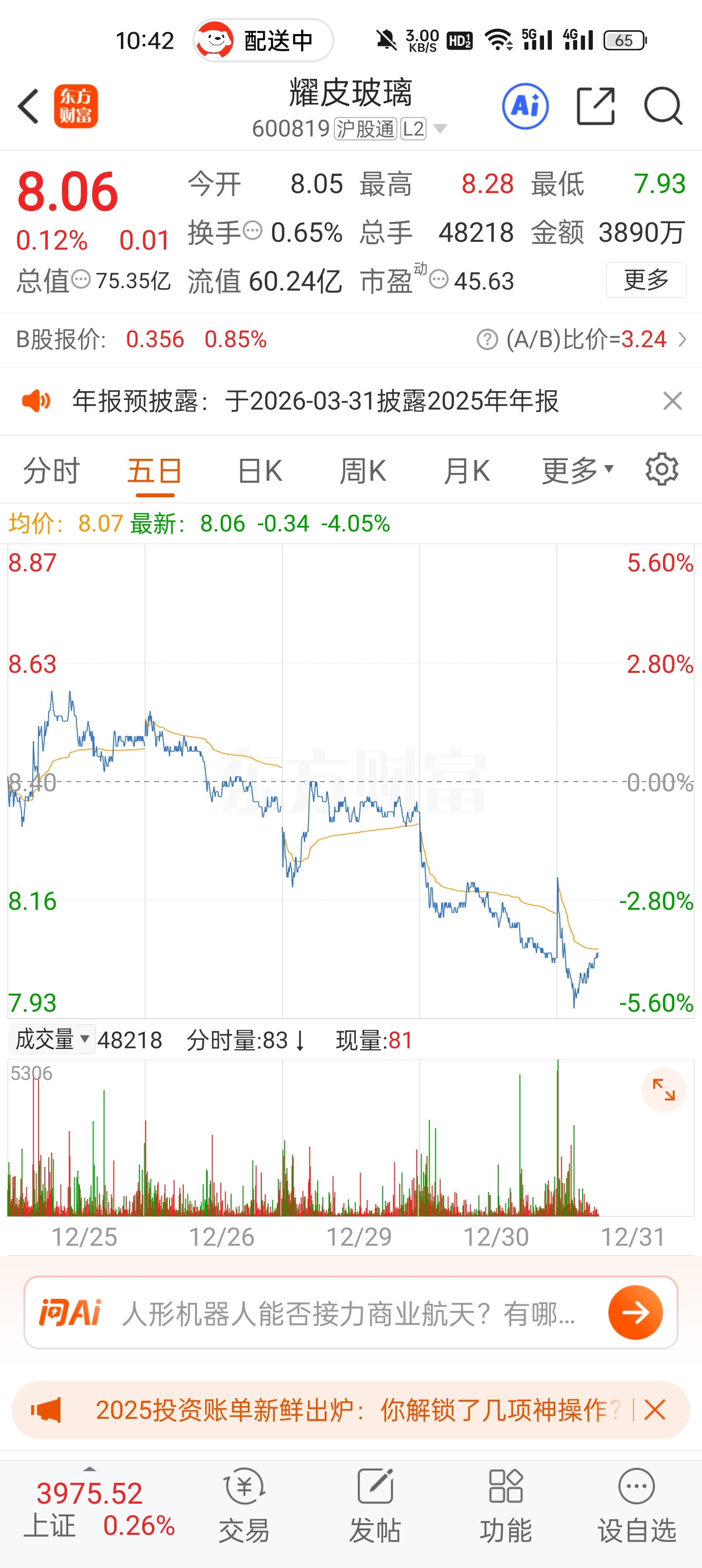 $耀皮玻璃(SH600819)$