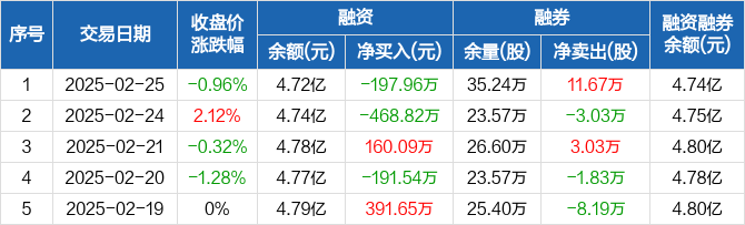 隧道股份:融资净偿还197.96万元,融资余额4.72亿元(02-25)