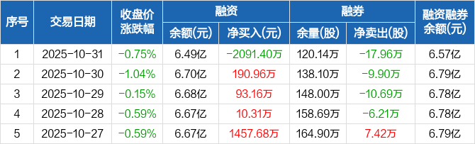 隧道股份:融资净偿还2091.4万元,融资余额6.49亿元(10-31)