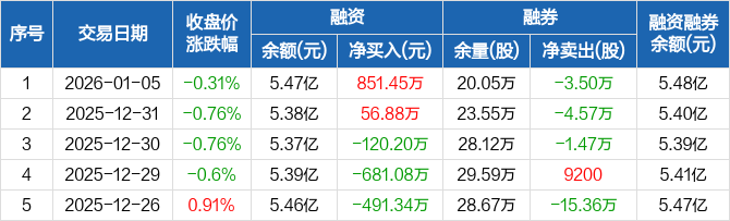 隧道股份:融资净买入851.45万元,融资余额5.47亿元(01-05)