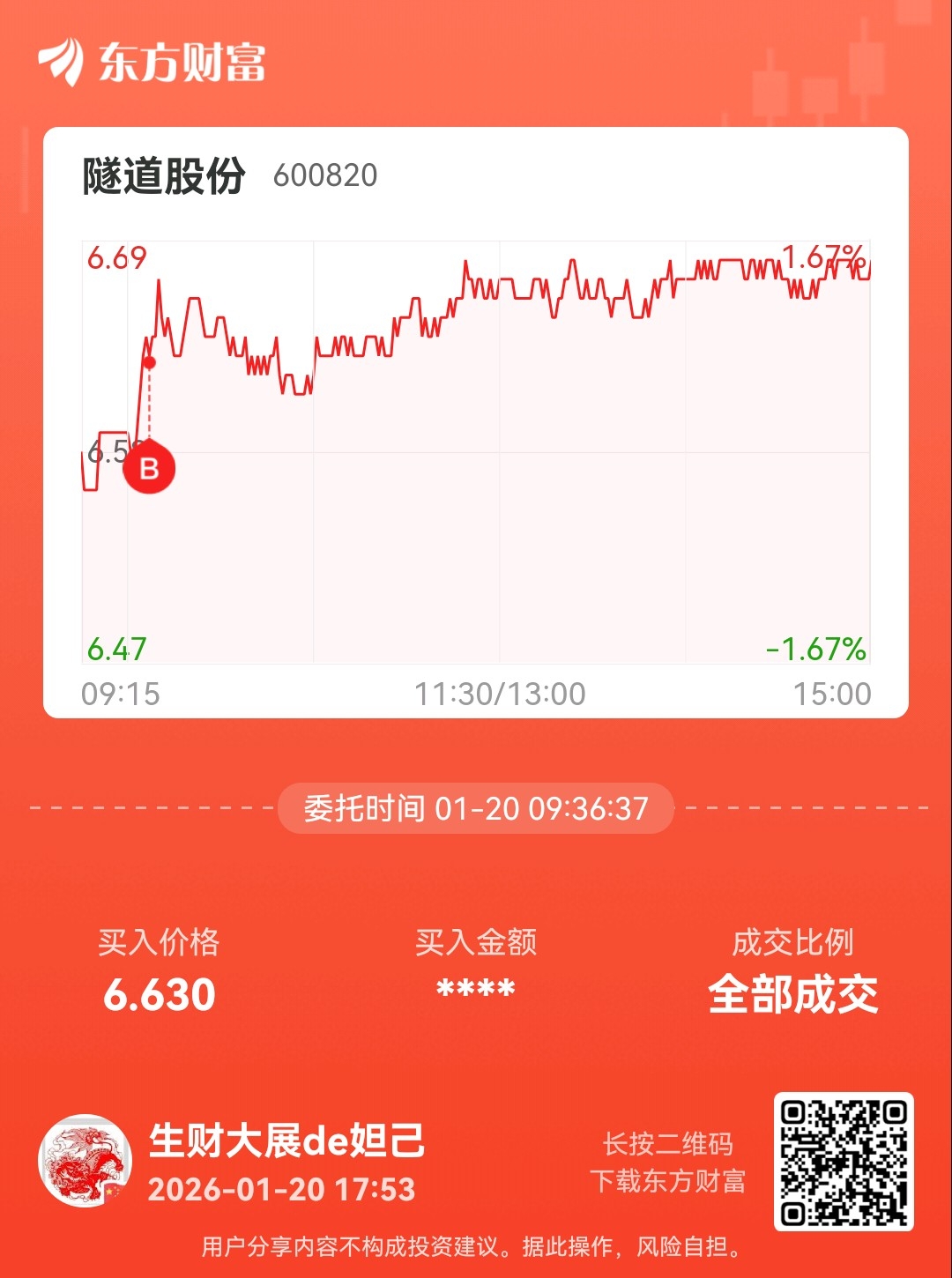 温馨提示: 1.根据《证券法》规定,禁止编造、传播虚假信息或者误导性信息,扰乱证券市场;2.用户在本社区发表的所有资料、言论等仅代表个人观点,与本网站立场无关,不对您构成任何投资建议。用户应基于自己的独立判断,自行决定证券投资并承担相应风险。《东方财富社区管理规定》