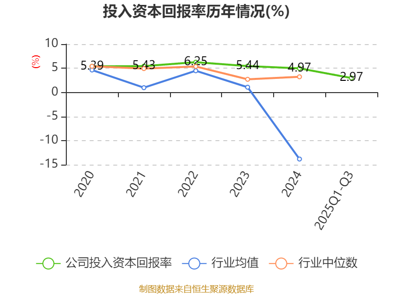 盈利能力方面, 2025年前三季度公司加权平均净资产收益率为5.9%,同比下降2.28个百分点。公司2025年前三季度投入资本回报率为2.97%,较上年同期下降1.32个百分点。