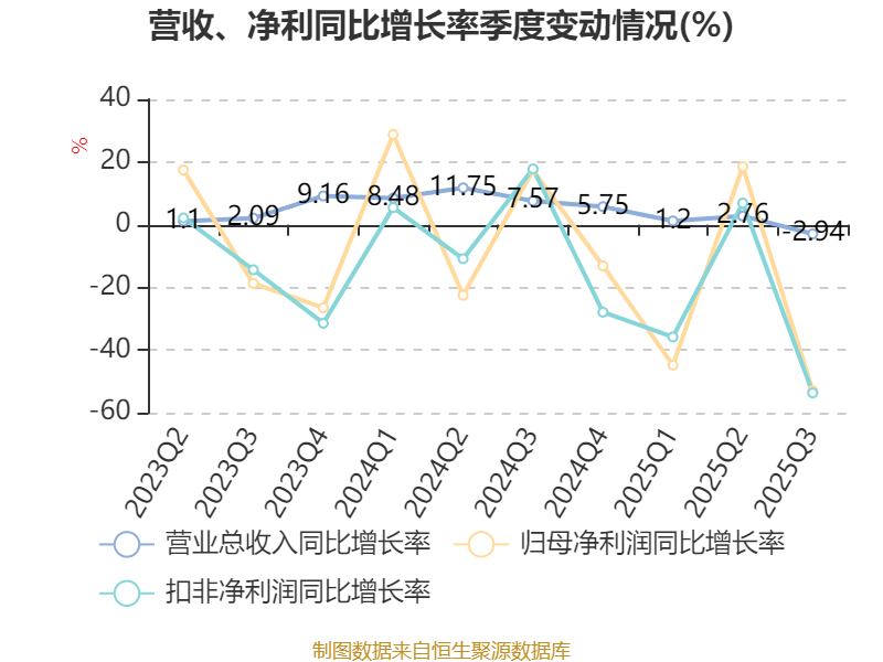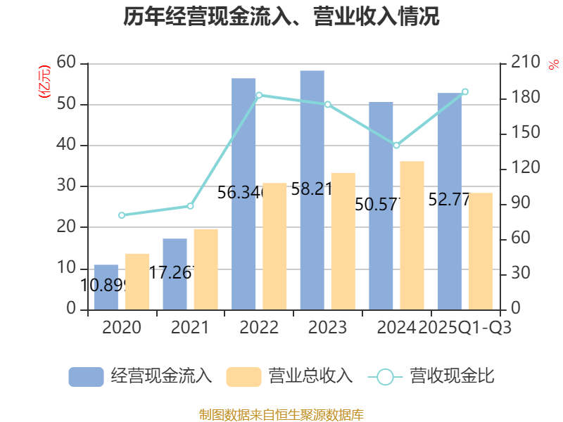 2025年前三季度,公司经营活动现金流净额为19.75亿元,同比增长41.14%;筹资活动现金流净额-5.66亿元,同比减少7.56亿元;投资活动现金流净额-19.37亿元,上年同期为-9.75亿元。