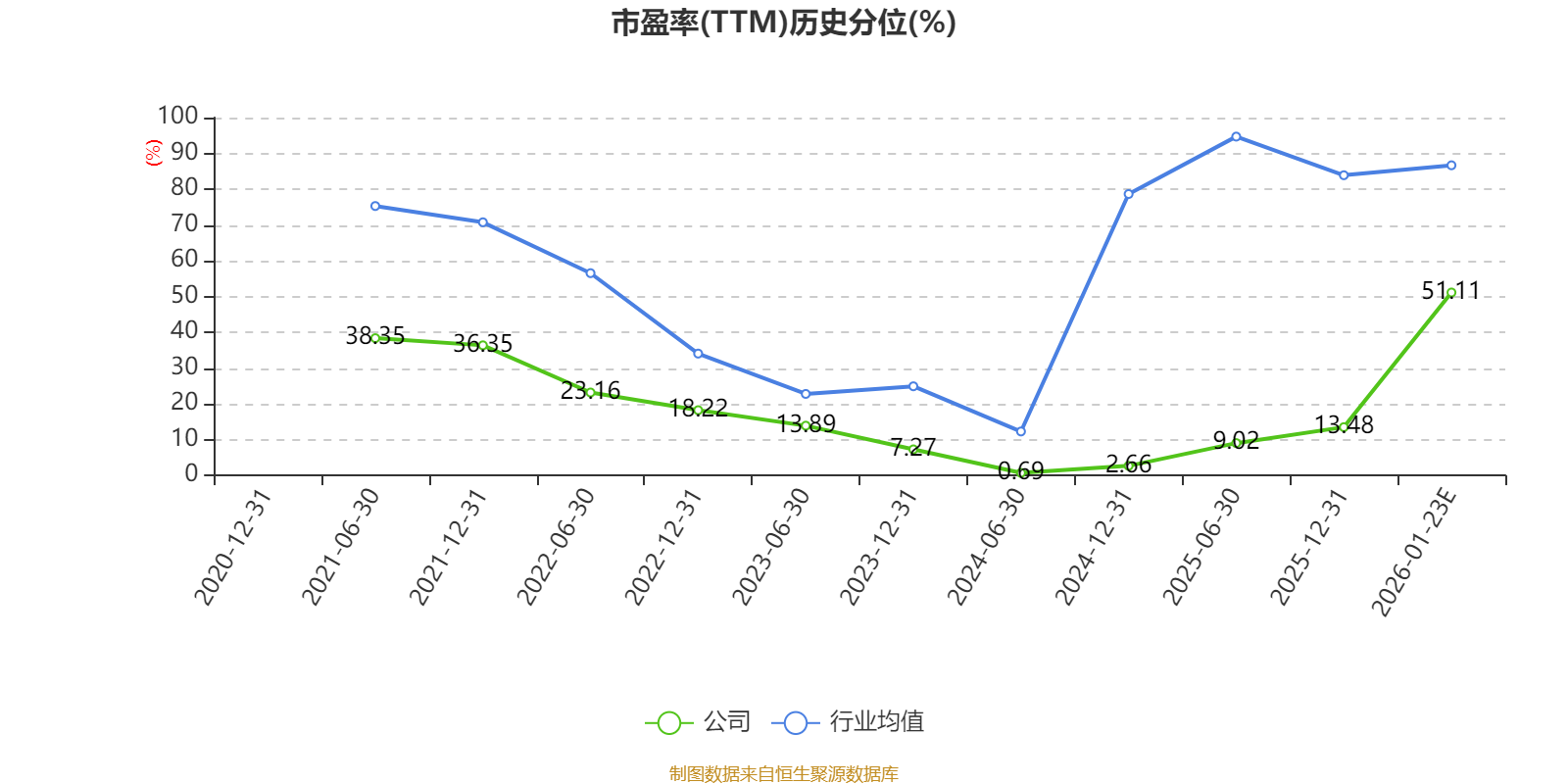 以本次披露业绩预告均值计算,公司近年市盈率(TTM)图如下所示: