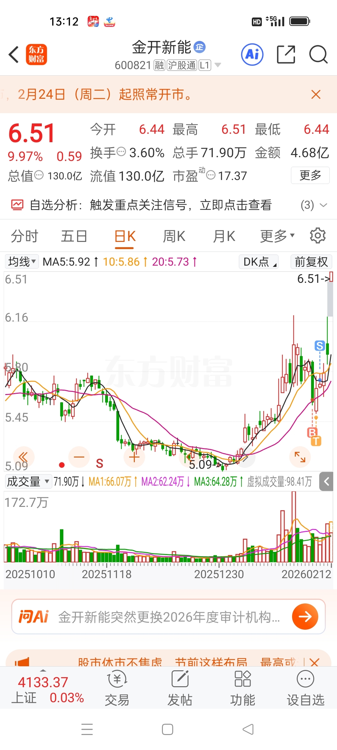 $金开新能(SH600821)$ 不卖不知道是否会涨停。难抄。
