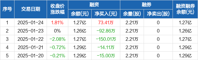 上海物贸:融资净买入73.41万元,融资余额1.27亿元(01-24)
