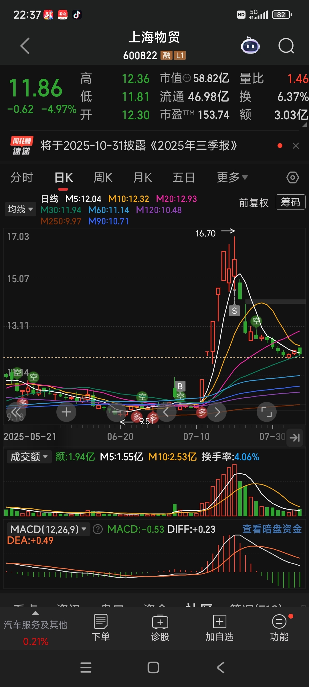 上次在上海物贸赚了50个点,下周低开我打算进一点货。很多人都在抱怨远离上海股,我