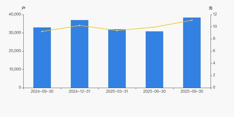 截至2025年9月30日,公司最新A股总股本为4.96亿股,其中流通股本为3.96亿股。户均持有流通股数量由上期的1.28万股下降至1.03万股,户均流通市值11.43万元。