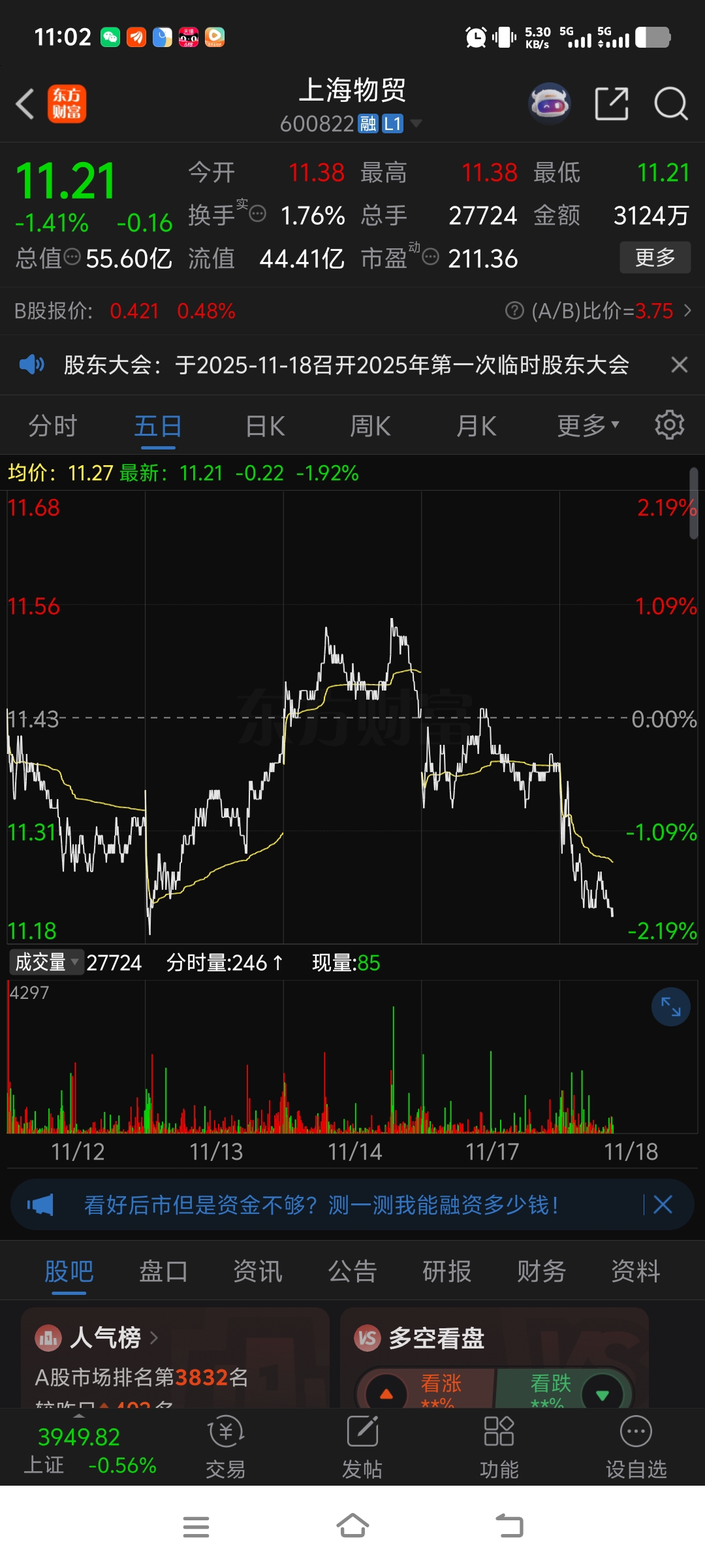 把五日线破了