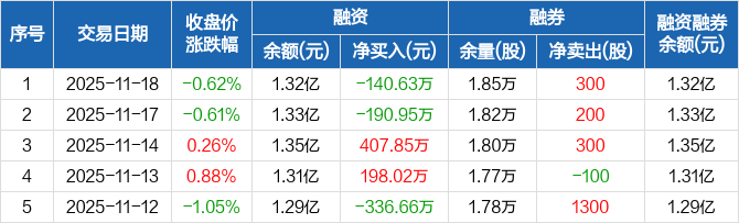上海物贸:融资净偿还140.63万元,融资余额1.32亿元(11-18)