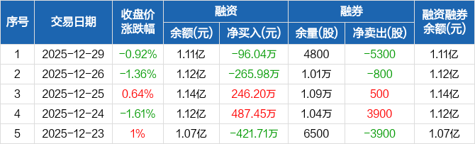 上海物贸:融资净偿还96.04万元,融资余额1.11亿元(12-29)