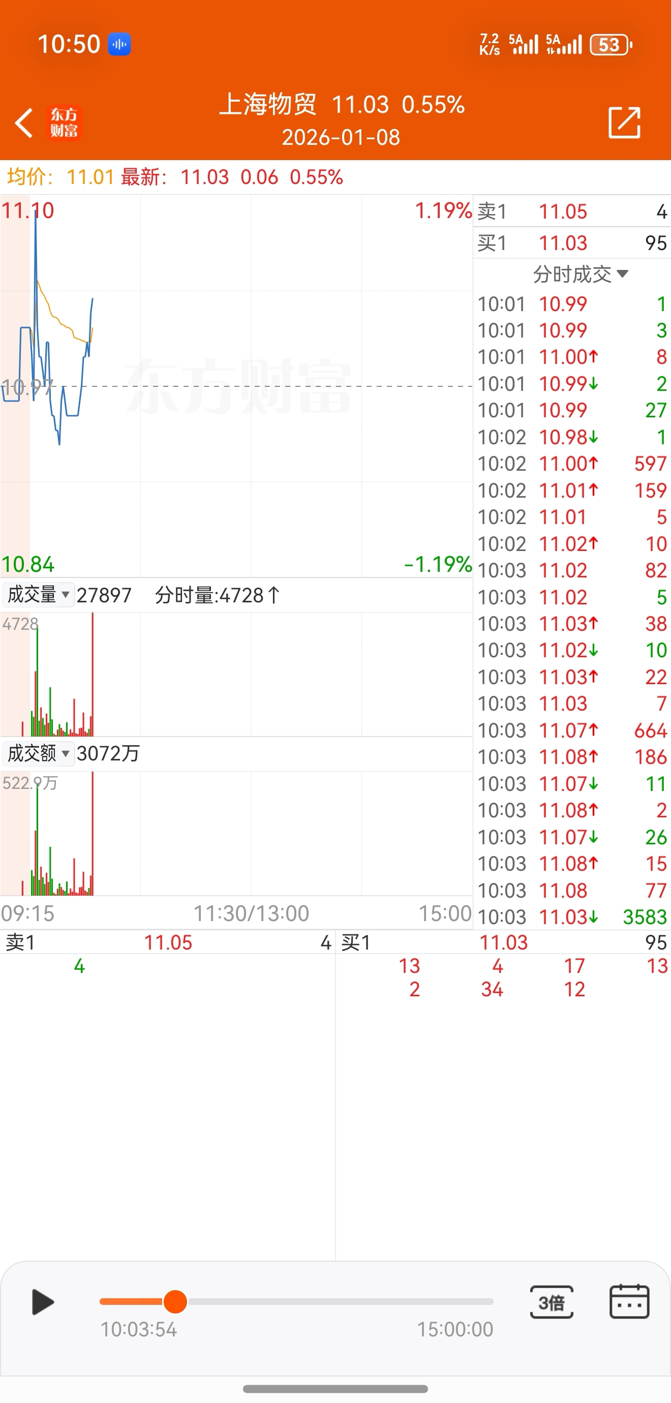 $上海物贸(SH600822)$ 看似放量,其实对半是对倒出来的量能