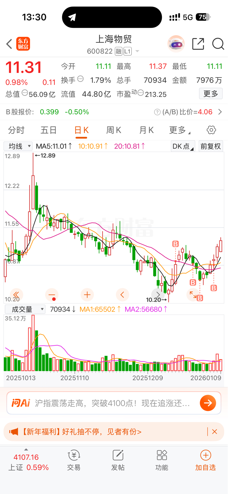 $上海物贸(SH600822)$ 等你起飞,