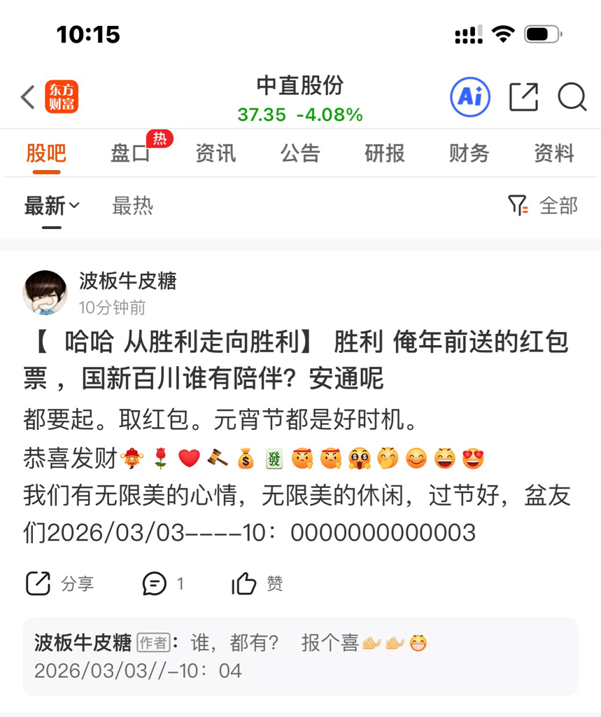 温馨提示: 1.根据《证券法》规定,禁止编造、传播虚假信息或者误导性信息,扰乱证券市场;2.用户在本社区发表的所有资料、言论等仅代表个人观点,与本网站立场无关,不对您构成任何投资建议。用户应基于自己的独立判断,自行决定证券投资并承担相应风险。《东方财富社区管理规定》