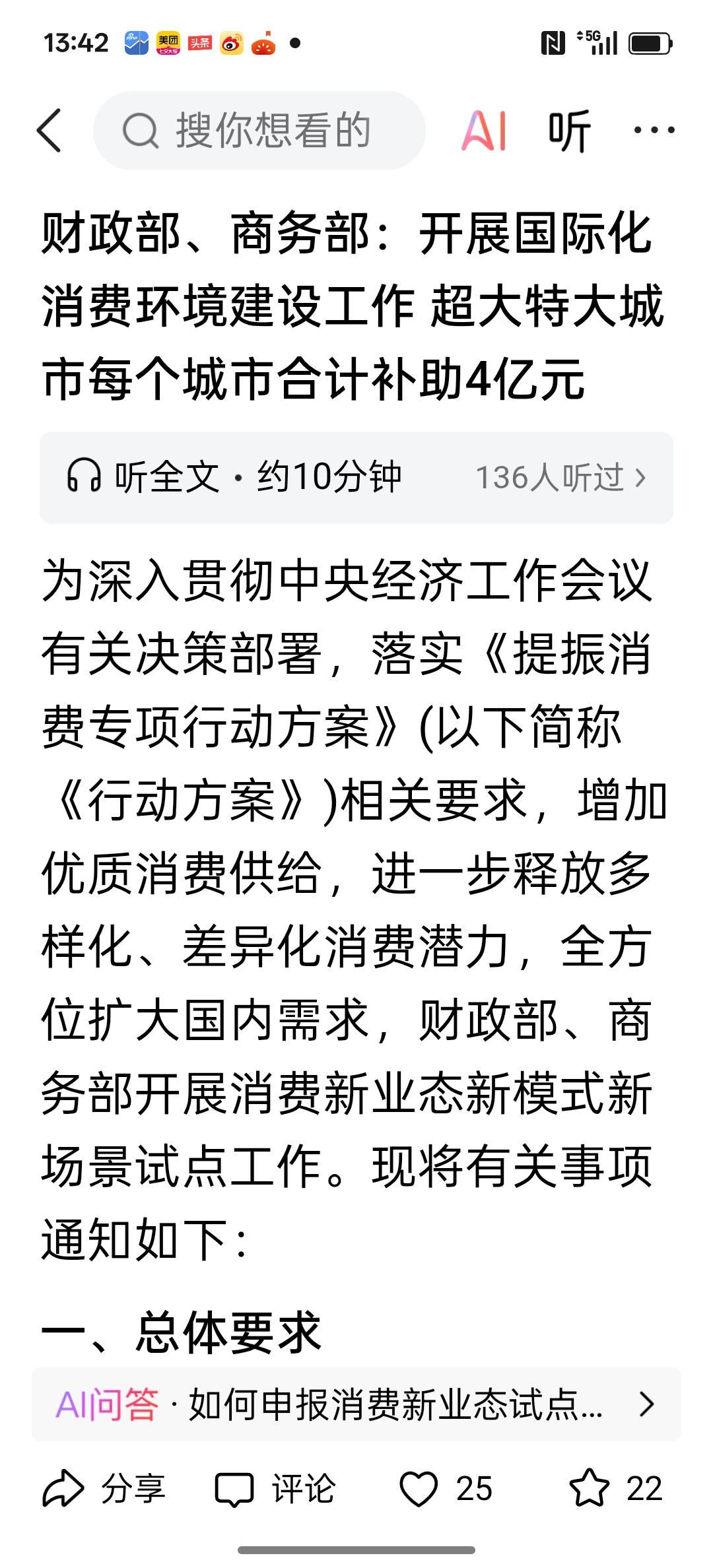 $益民集团(SH600824)$ 首发经济在获政策利好,近日财政部商务部《关于提振消费专项行动方案》重点支持城市首发经济服务体系,创新服务场景,开展商业新业态,新模式,对特大型城市每个补助4亿元,作业上海市益民集团是特大利好。24年12月份的五连板,会不会重新上演?很期待。