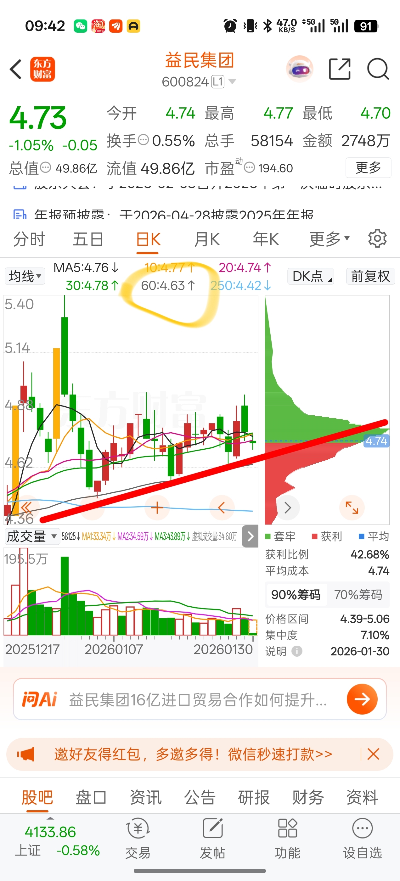 $益民集团(SH600824)$ 大盘的影响太大了,但是六十日线一定会是铁支撑